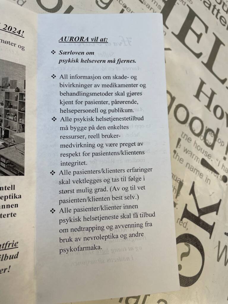 Aurora arbeider for at alle pasienter/ klienter innen psykisk helsetjeneste skal få tilbud om nedtrapping og avvenning fra bruk av nevroleptika og andre psykofarmaka.