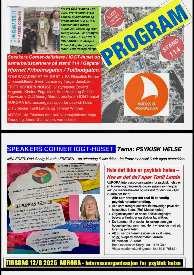 Aurora er en politisk nøytral organisasjon, men vi vil gjerne informere om programmet til alle dere som vil ta en tur til Youngstorget. Gratulerer med dagen! 🌹